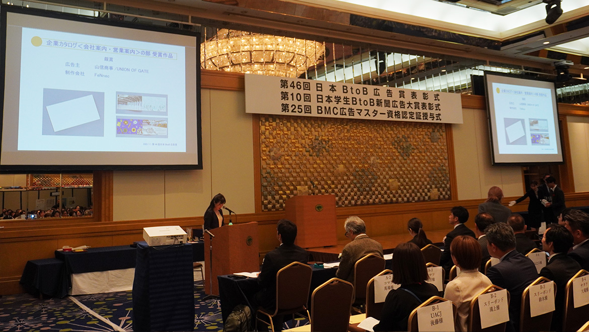 本日、弊社代表の山田と、弊社企業カタログの制作、作成いただきました、株式会社フェネックの福田様で東武ホテルレバント東京(東京・錦糸町)にて開催された、日本BtoB広告賞の授賞式に参加して参りました。